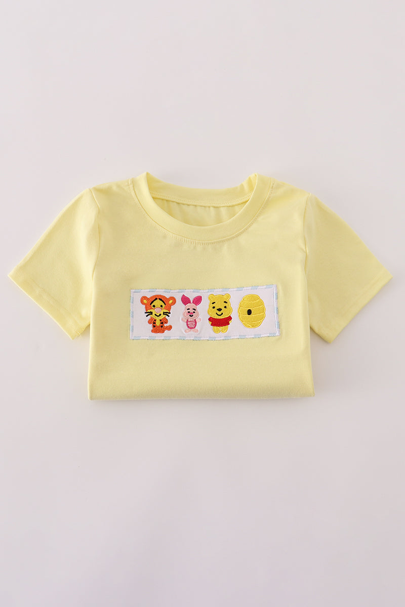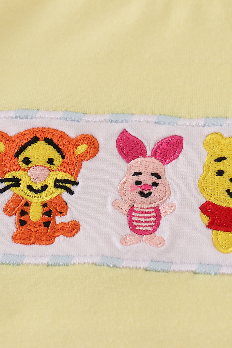 Blue character embroidery gingham shorts set