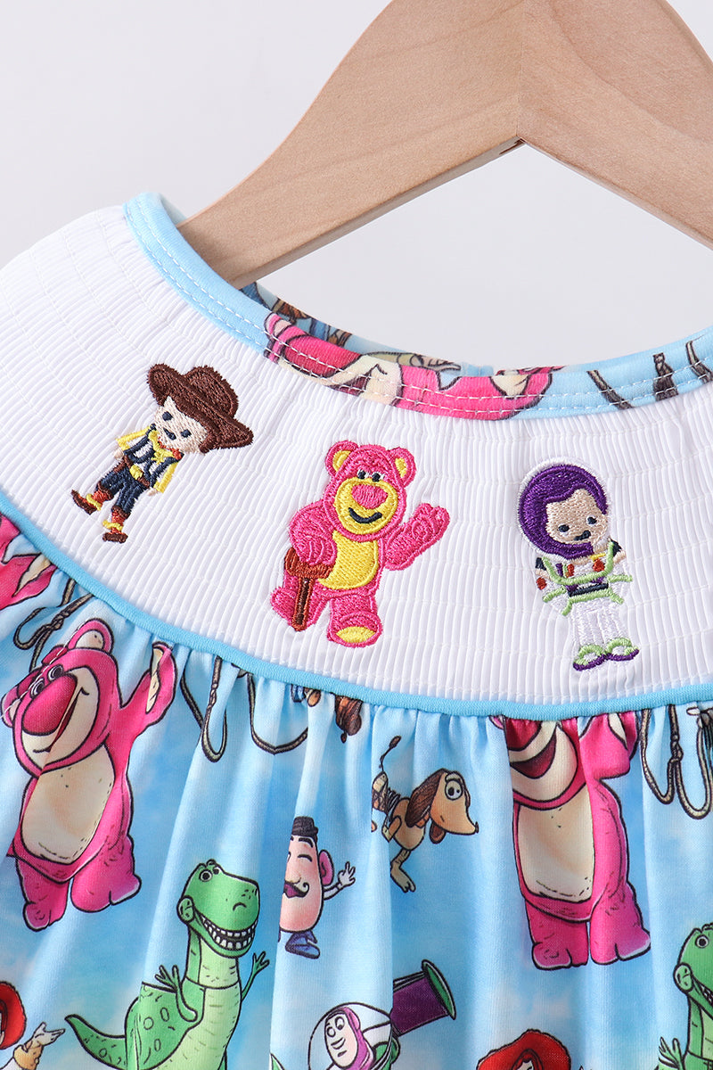 Meet the perfect outfit for little adventurers! This charming blue shorts set features beloved characters that kids adore, paired with delicate smocking details and playful ruffles for extra flair. The soft, comfortable fabric keeps up with active play, while the coordinated design makes getting dressed a breeze. Ideal for playdates, casual outings, or cozy days at home, this set brings joy and style to any child's wardrobe.