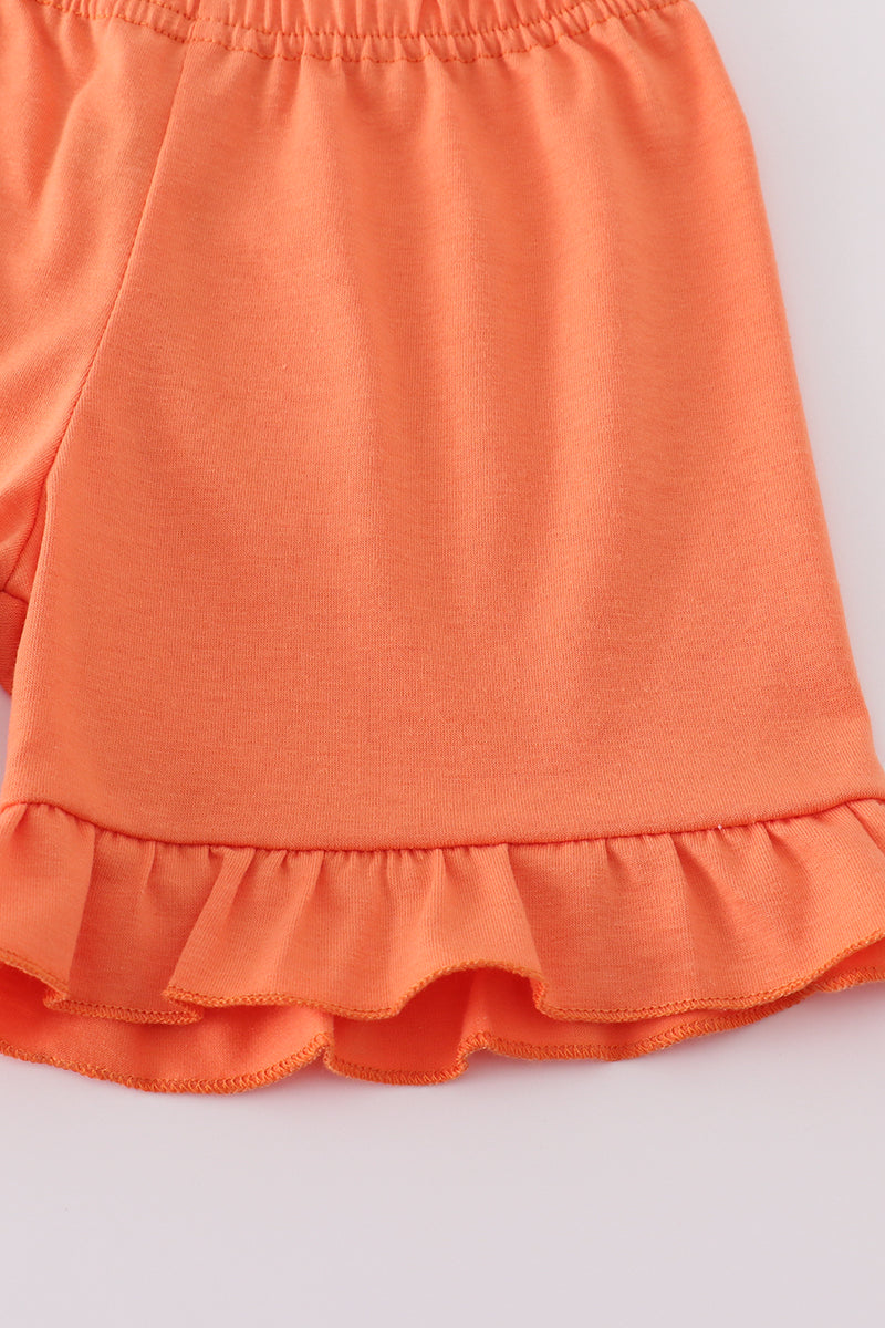 Blue dinosaur embroidery gingham ruffle shorts set