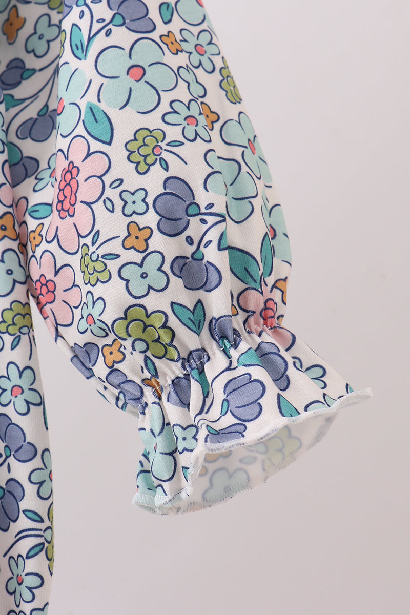 Add a splash of charm with the Blue Floral Blessed Embroidery Bubble. This playful piece features delicate blue floral embroidery that brightens any day, wrapping you in cheerful style and comfort. Perfect for adding a happy touch to your wardrobe!