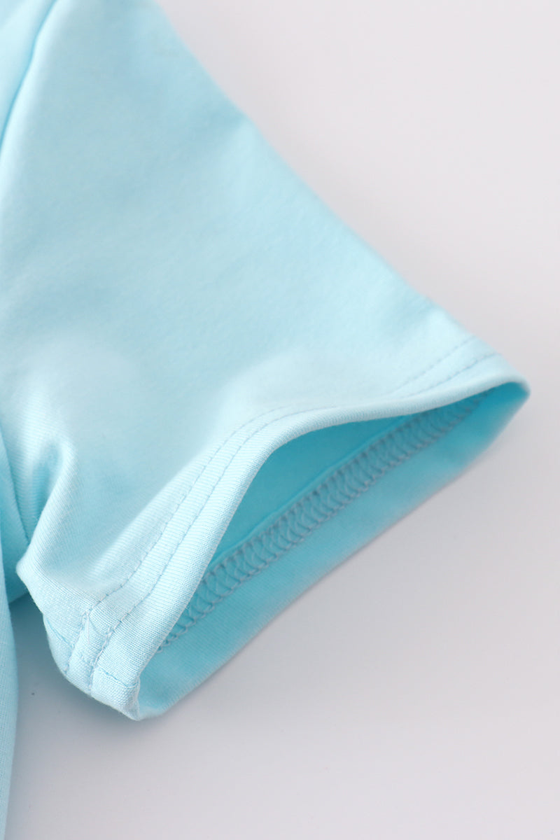 Get ready for some puppy love with our blue gingham shorts set! Featuring a charming applique design, these shorts are as cute as they are comfortable. Perfect for warm weather adventures, this set is a must-have for your little one's wardrobe. (Woof-tastic!)