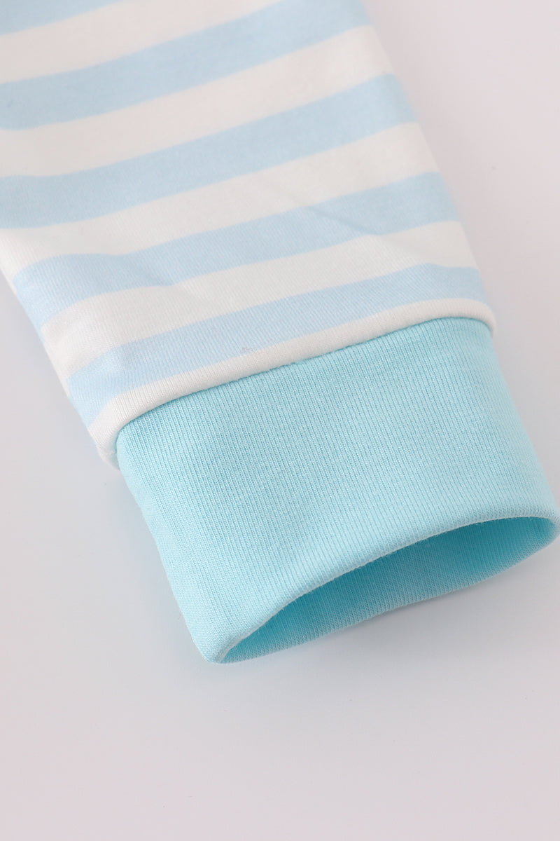 Blue snowman embroidery stripe bubble