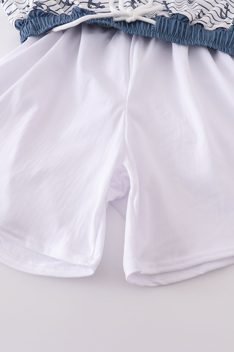 Blue stripe anchor print dad swim trunks