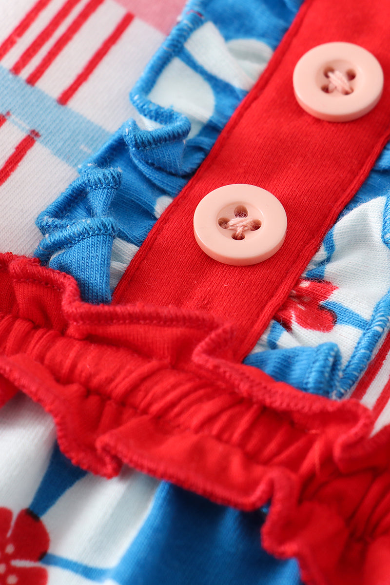 Platinum Blue & white floral print ruffle girl romper