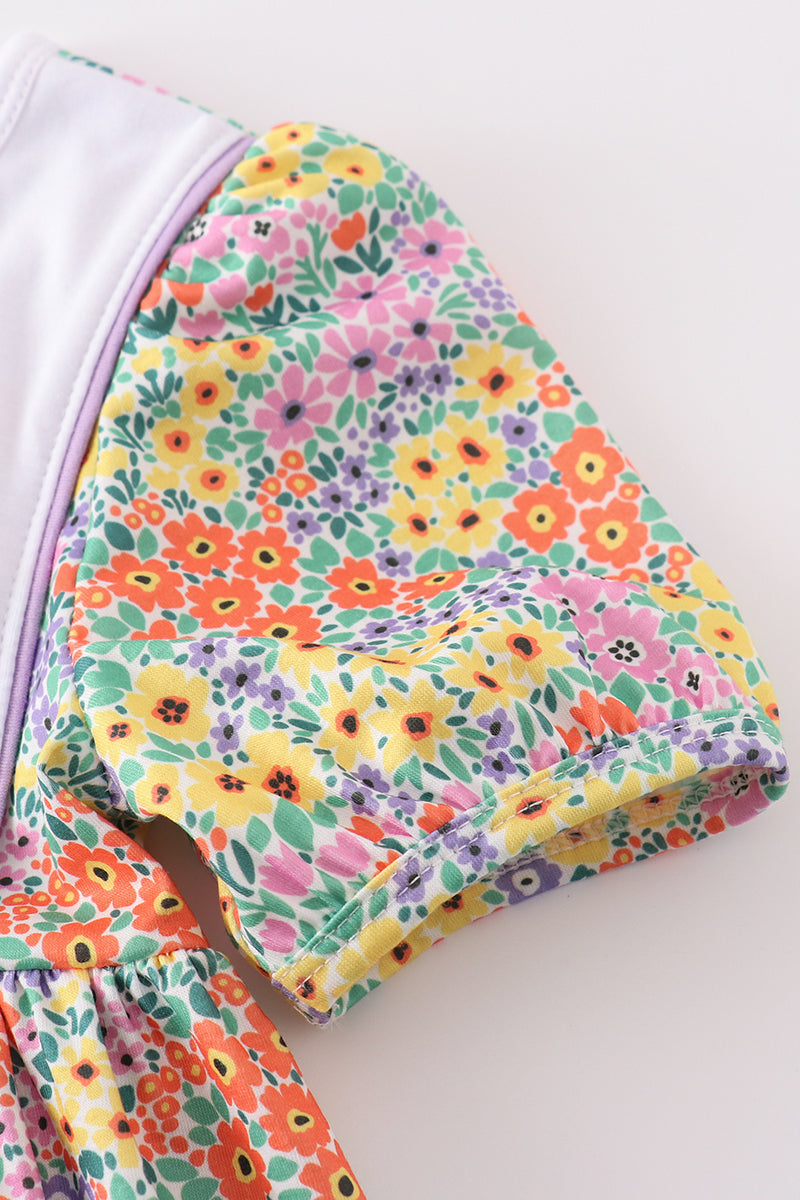 Easter floral bunny egg embroidery girl dress