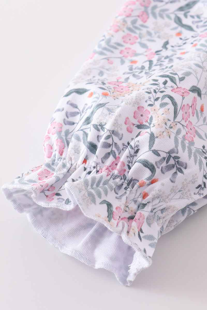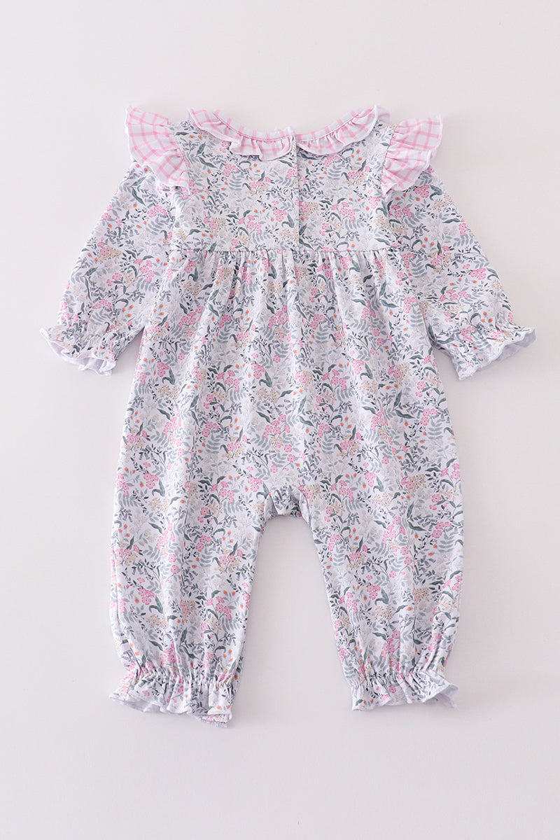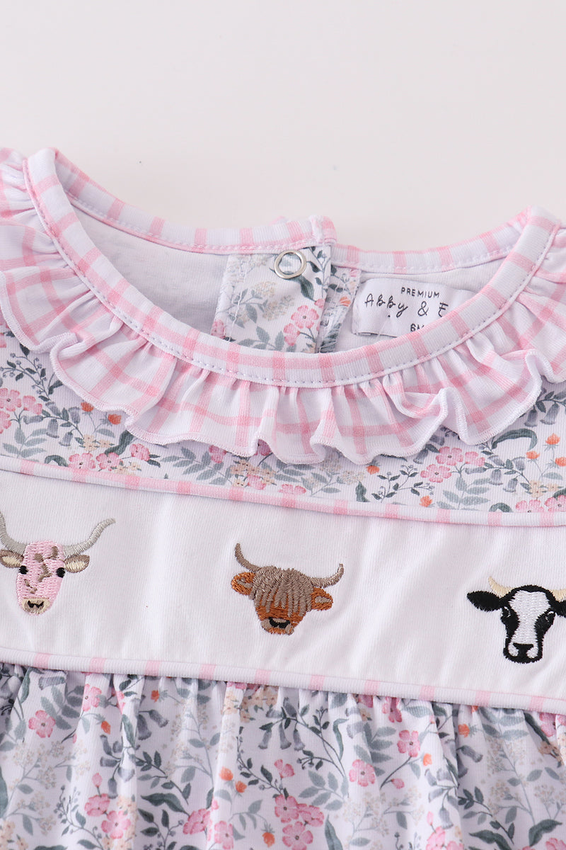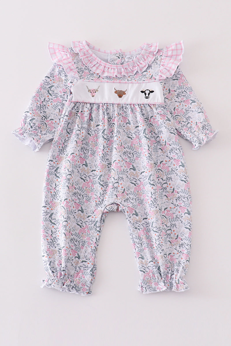 Get ready to mooove and groove in this floral print cow embroidery romper. Perfect for your little farmer fashionista, this romper features a playful cow design and vibrant floral print. Your little one will be the talk of the barnyard in this adorable romper!