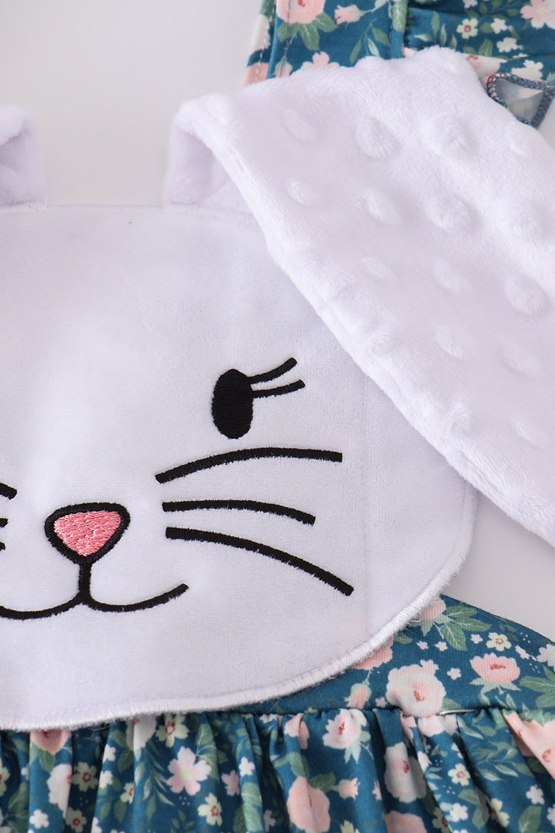 Green floral bunny applique dress