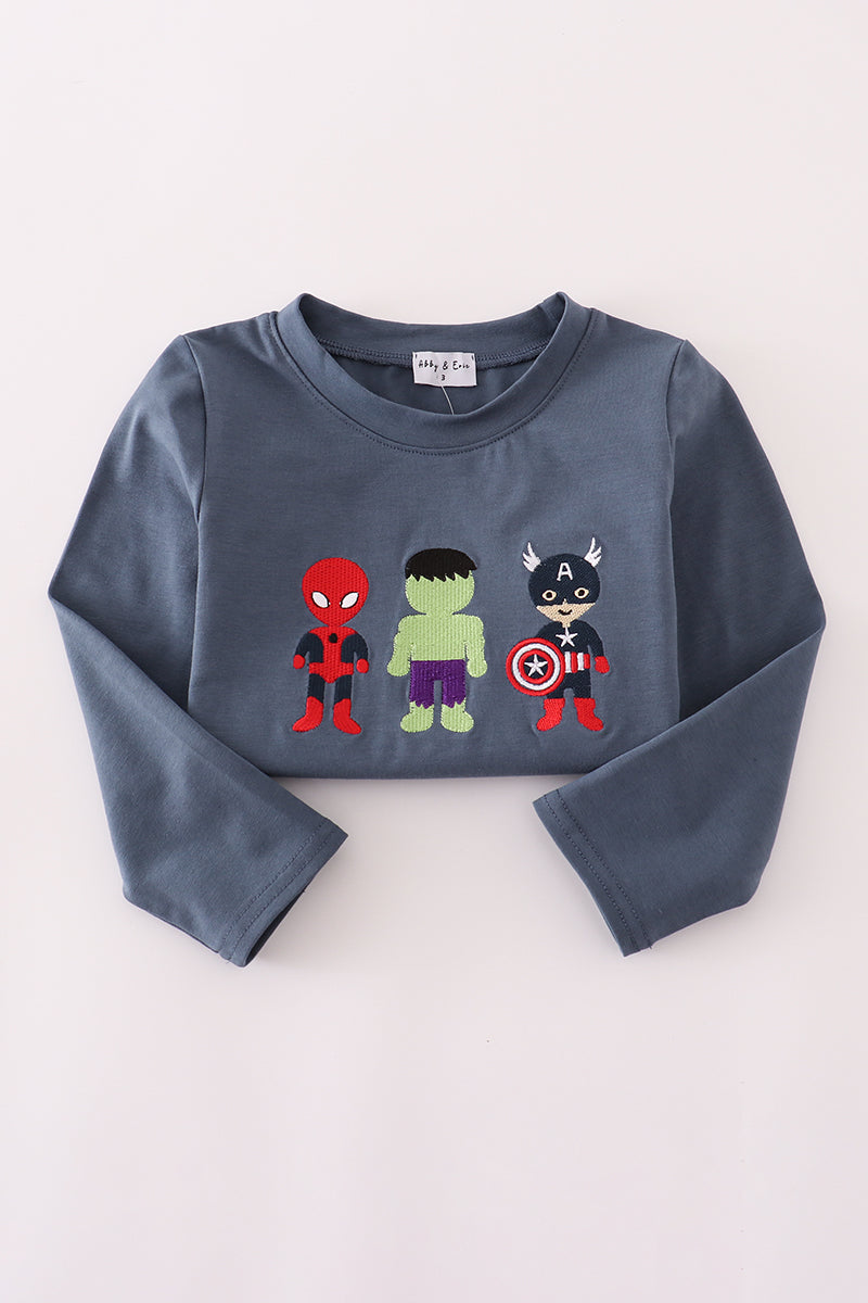 Navy character embroidery top