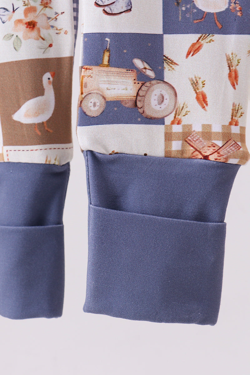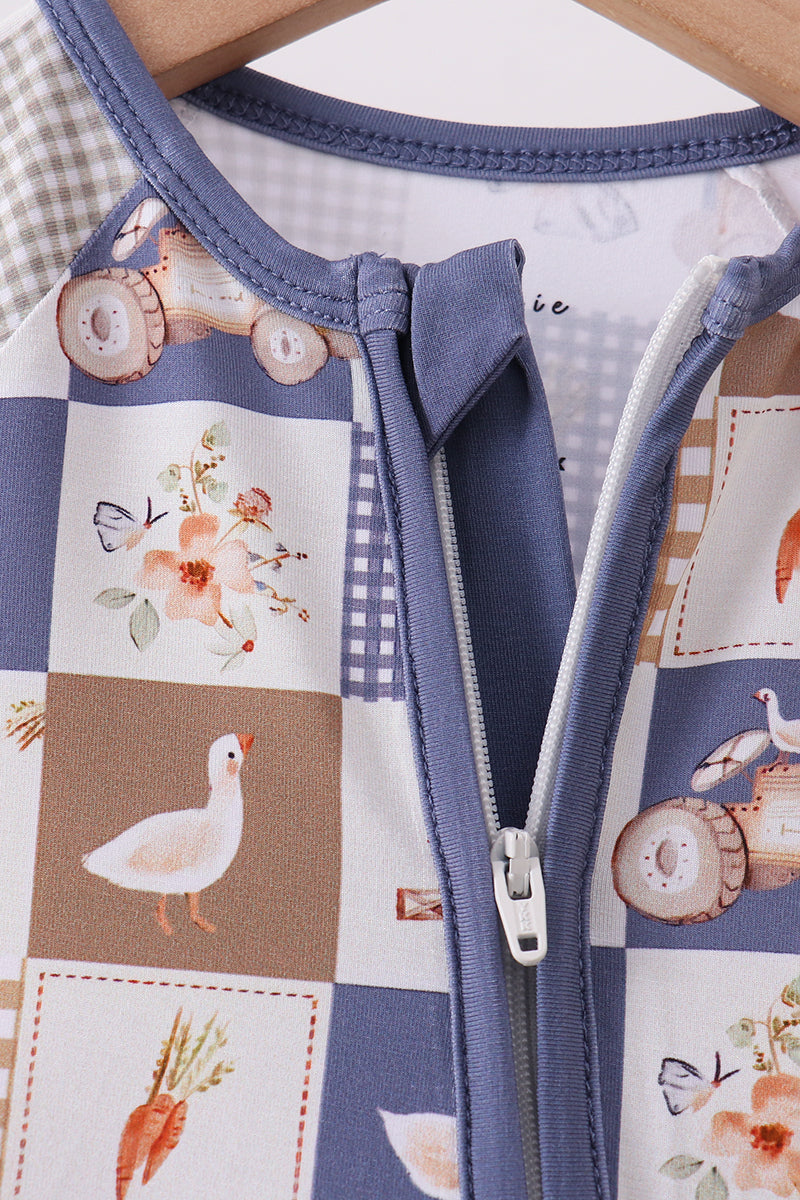 Navy checkered farm bamboo romper