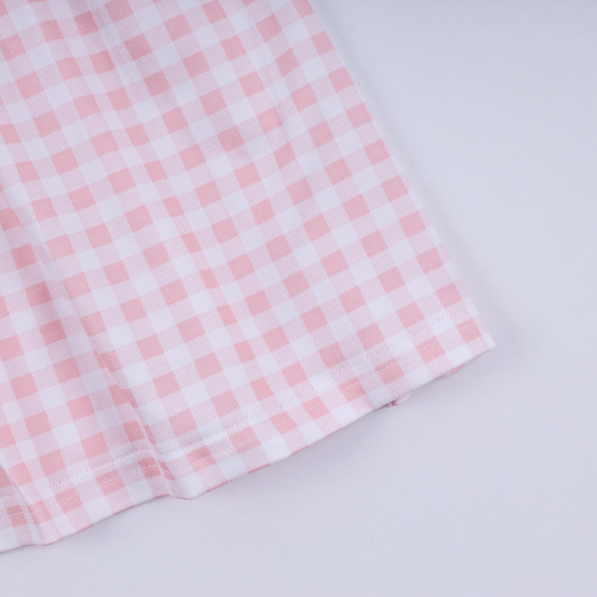 Meet the dress that's as charming as it is twirl-worthy! This pink gingham ruffle dress features adorable character details and hand-smocked craftsmanship that adds texture and personality. The playful ruffles dance with every movement, while the classic gingham pattern keeps things sweet and timeless. Perfect for special occasions or everyday adventures, this dress combines whimsical character charm with quality construction that parents love. A delightful choice for little ones who love to express their unique style.