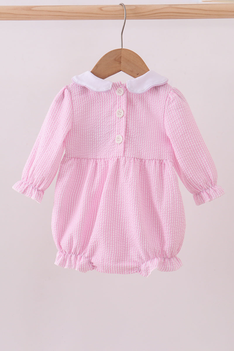 Meet the sweetest addition to any little one's wardrobe! This charming bubble features delightful puppy embroidery set against classic seersucker fabric in soft pink. The playful pup design brings personality and joy, while the textured seersucker keeps things cool and comfortable. Perfect for playdates, family gatherings, or everyday adventures, this bubble combines adorable style with practical comfort. A must-have piece that'll have everyone smiling!