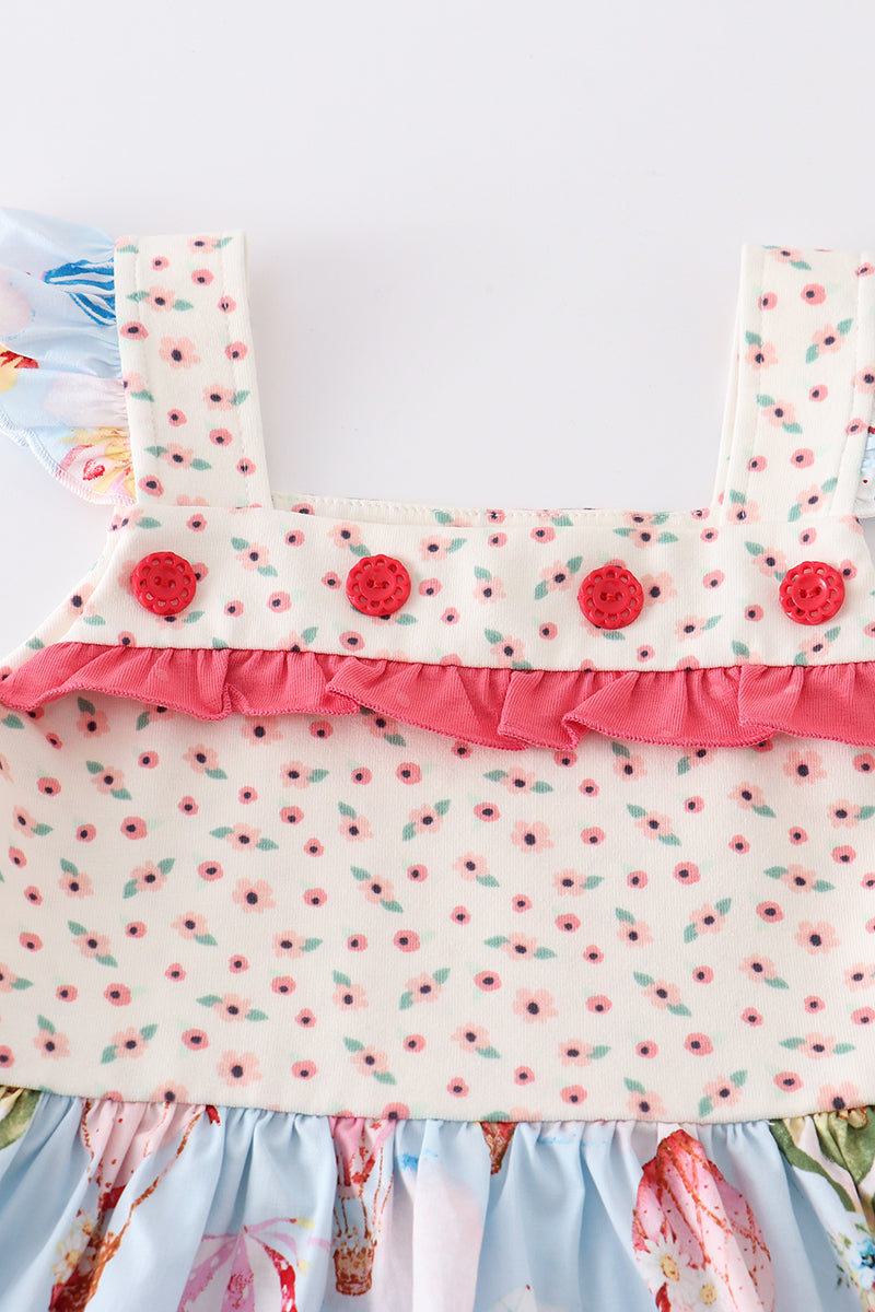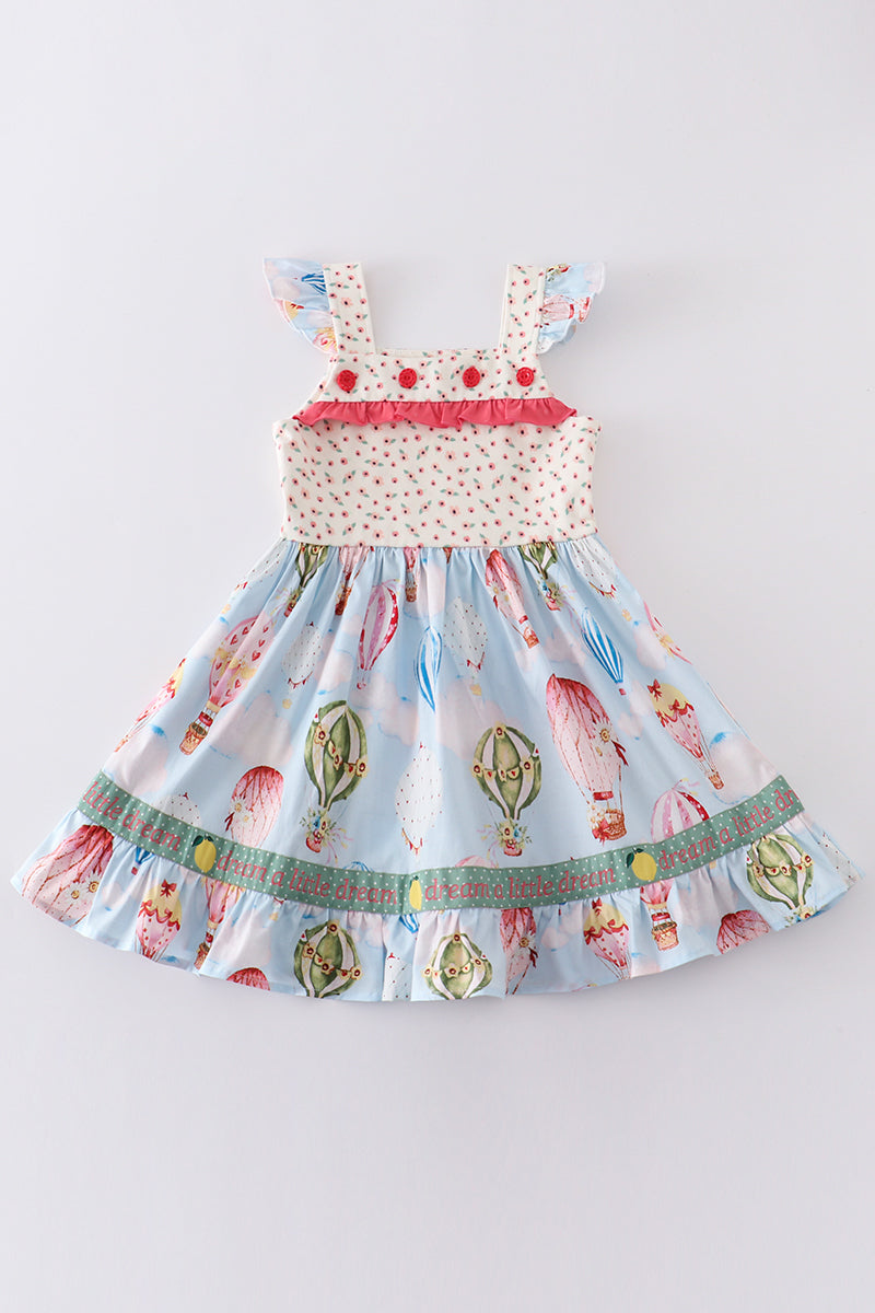 Get ready to turn heads in our Platinum balloon print floral flutter trim dress! This stylish and unique dress features a playful balloon print and delicate flutter trim, making it perfect for any occasion. With its eye-catching design, you'll be sure to stand out from the crowd and make a statement.
