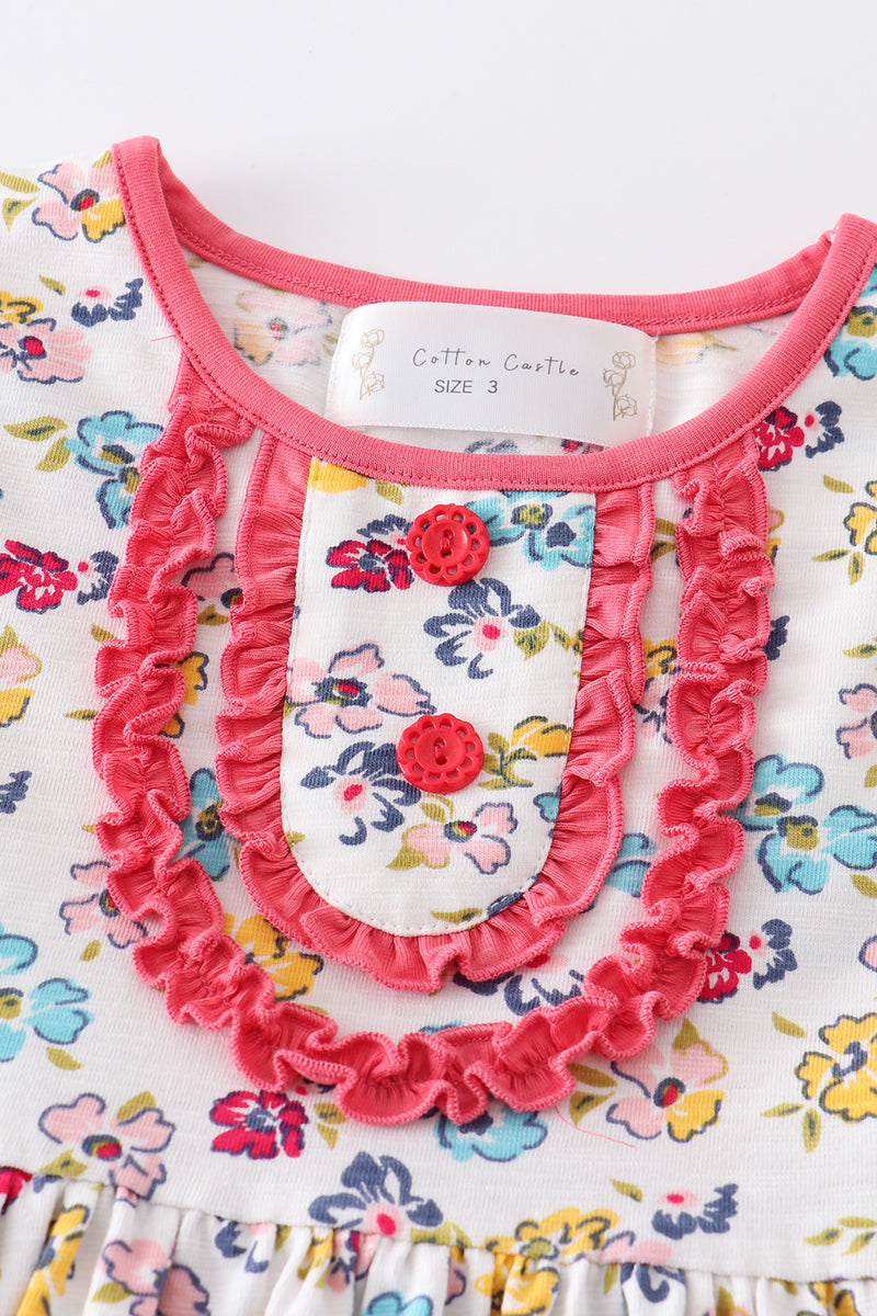 Get ready to stand out in this unique Platinum floral print ruffle dress! With its playful and quirky print, you'll be sure to turn heads. The ruffle details add a touch of femininity and the platinum color gives it a luxurious feel. Perfect for any occasion, this dress will have you looking and feeling chic and confident!