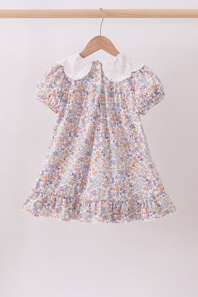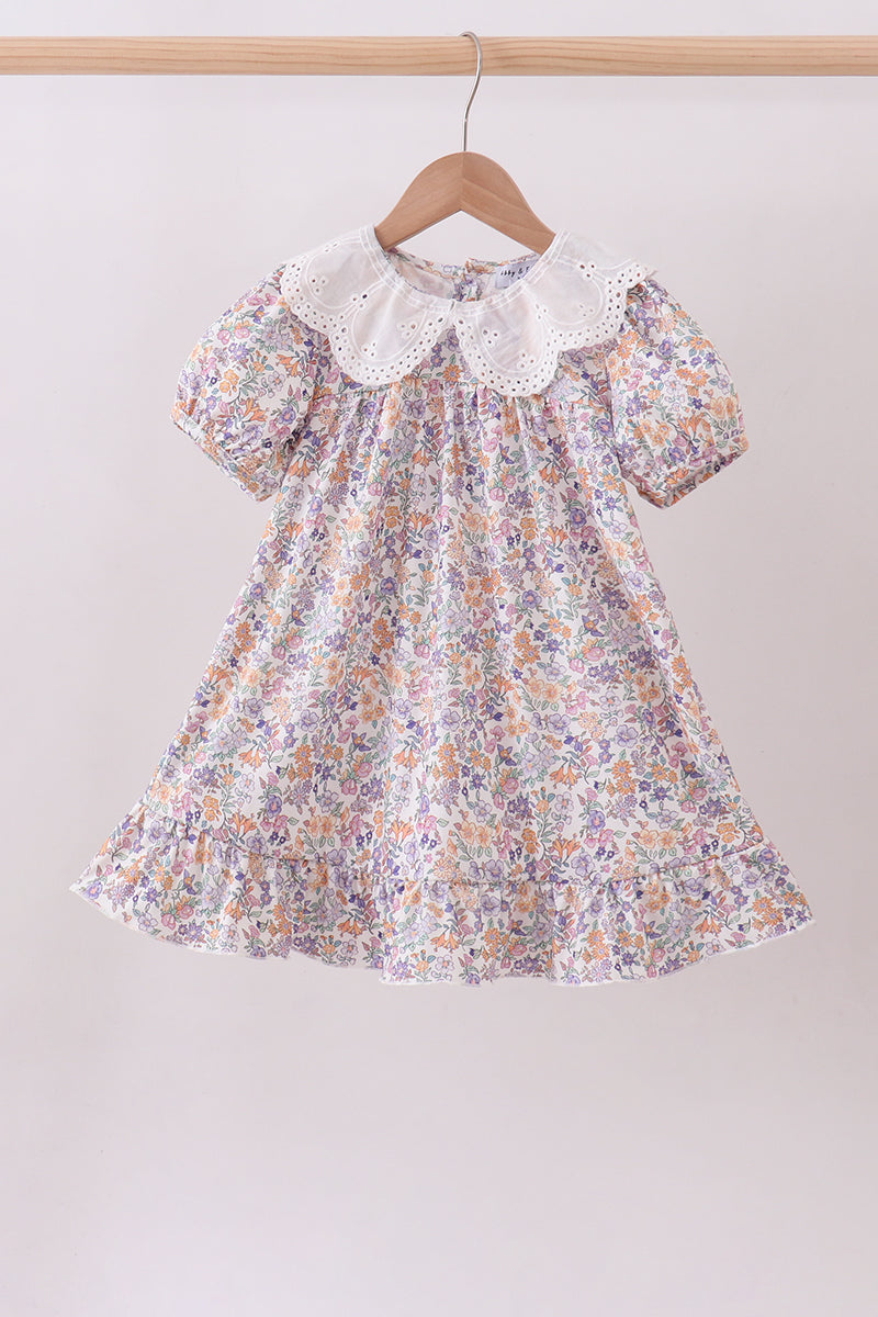 Purple floral lace ruffle dress