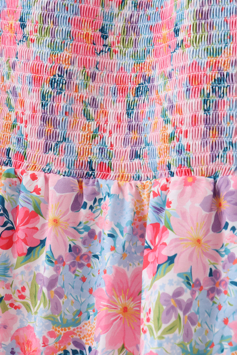 Twirl into spring with this charming purple floral smocked dress! Delicate blooms dance across soft fabric while the smocked bodice creates a flattering, feminine silhouette that moves with you. Perfect for garden parties, weekend brunch, or whenever you want to feel effortlessly put-together. The playful print brings joy to your wardrobe, while the timeless smocking detail adds vintage-inspired elegance. Comfortable, stylish, and utterly delightful.