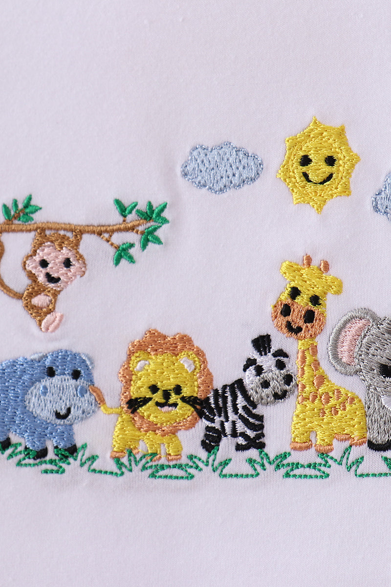 Hop into fun with this adorable white gingham shorts set featuring whimsical zoo embroidery! Perfect for little adventurers, the classic gingham pattern pairs beautifully with charming animal designs that spark imagination. Soft, comfortable fabric keeps kids cool and happy all day long, whether they're playing in the backyard or heading out on a summer adventure. A delightful choice for parents who love mixing style with playfulness!